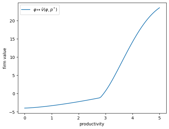 entry_val, v_bar = compute_net_entry_value(p, v_bar, parameters, grids)